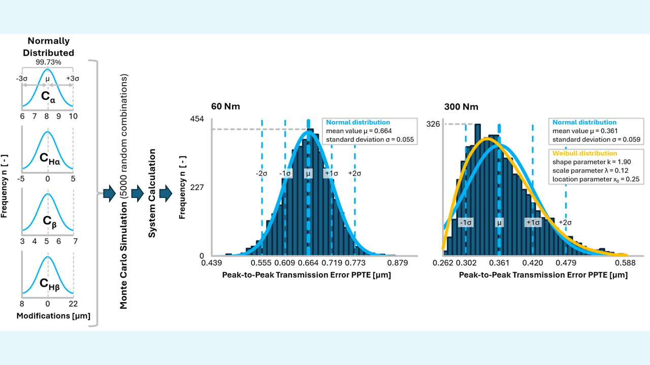 Diese Studie zeigt, wie Flankenmodifikationen mit Fertigungstoleranzen als normalverteilte Variablen modelliert und mithilfe von Monte-Carlo-Simulationen analysiert werden können, wodurch statistisch auswertbare Ergebnisse entstehen. Die Methode ist grundsätzlich auch auf andere Auslegungsparameter übertragbar.