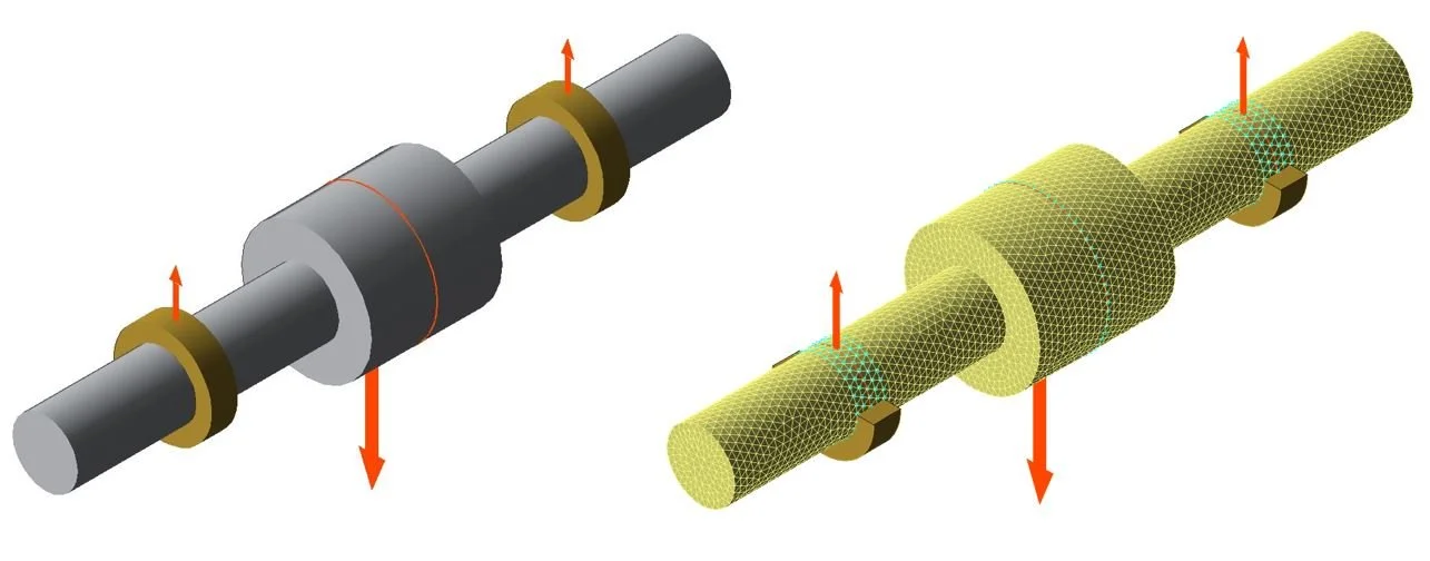 Bei komplexeren Geometrien lassen sich aus CAD-Programmen exportierte Wellen einlesen und vernetzen. Die Vernetzung und die Ermittlung der Kontaktknoten mit dem restlichen Getriebemodell erfolgt weitgehend automatisch. Die Nutzerführung wurde auf maximale Effizienz ausgelegt, sodass eine FE-Welle innerhalb kürzester Zeit modelliert, vernetzt, und berechnet werden kann. Bei der internen Vernetzung können sowohl lineare als auch quadratische Tetraeder-Elemente für das Netz verwendet werden. Mit wenigen Klicks kann jeder Nutzer auch ohne spezielle FE-Kenntnisse ein vollwertiges Netz für eine FE-Rechnung erstellen. Diese automatisierte Vernetzung ist möglich, da die hier durchgeführte Verformungsanalyse an die Netzfeinheit deutlich geringere Ansprüche stellt, als eine Spannungsanalyse.