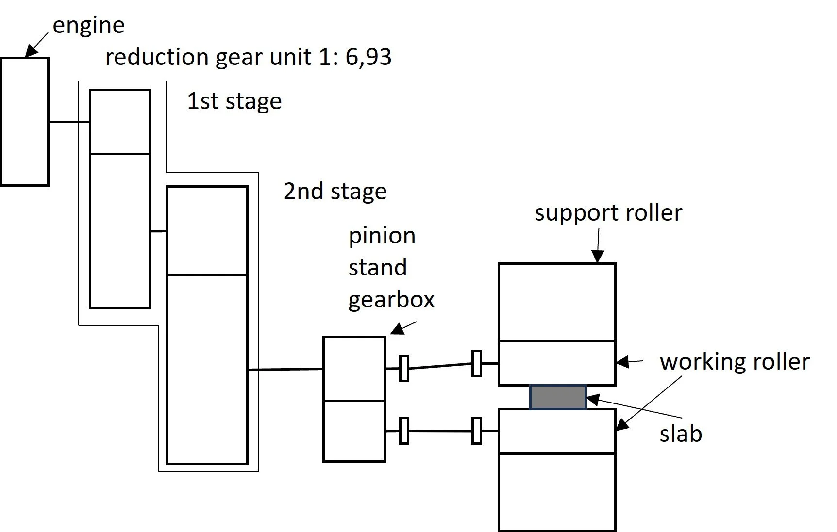 Die Vorteile zeigen sich bereits bei einem einfachen Antriebsstrang eines Walzwerkes, schematisch dargestellt in Abbildung 2. Die Kenndaten zur Auslegung stammen aus dem Forschungsvorhaben FVA 131.